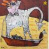 L'artiste a utilisé les techniques Acrylique, Collage, Pastel pour créer cette peinture petit format sur Carton toilé de style Art Singulier sur le thème Animaux.