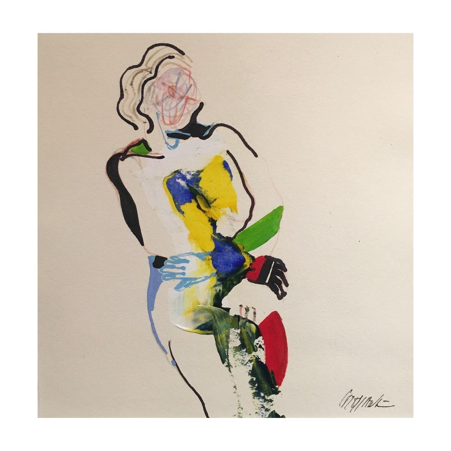 L'artiste a utilisé la technique Acrylique pour créer cette peinture petit format sur papier de style Art Singulier sur les thèmes Portraits, nu.