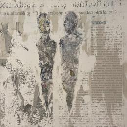 L'artiste a utilisé les techniques Acrylique, Collage, Sable pour créer cette peinture petit format sur Carton toilé de style Art Singulier.