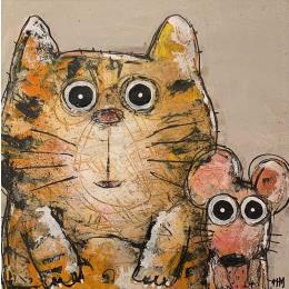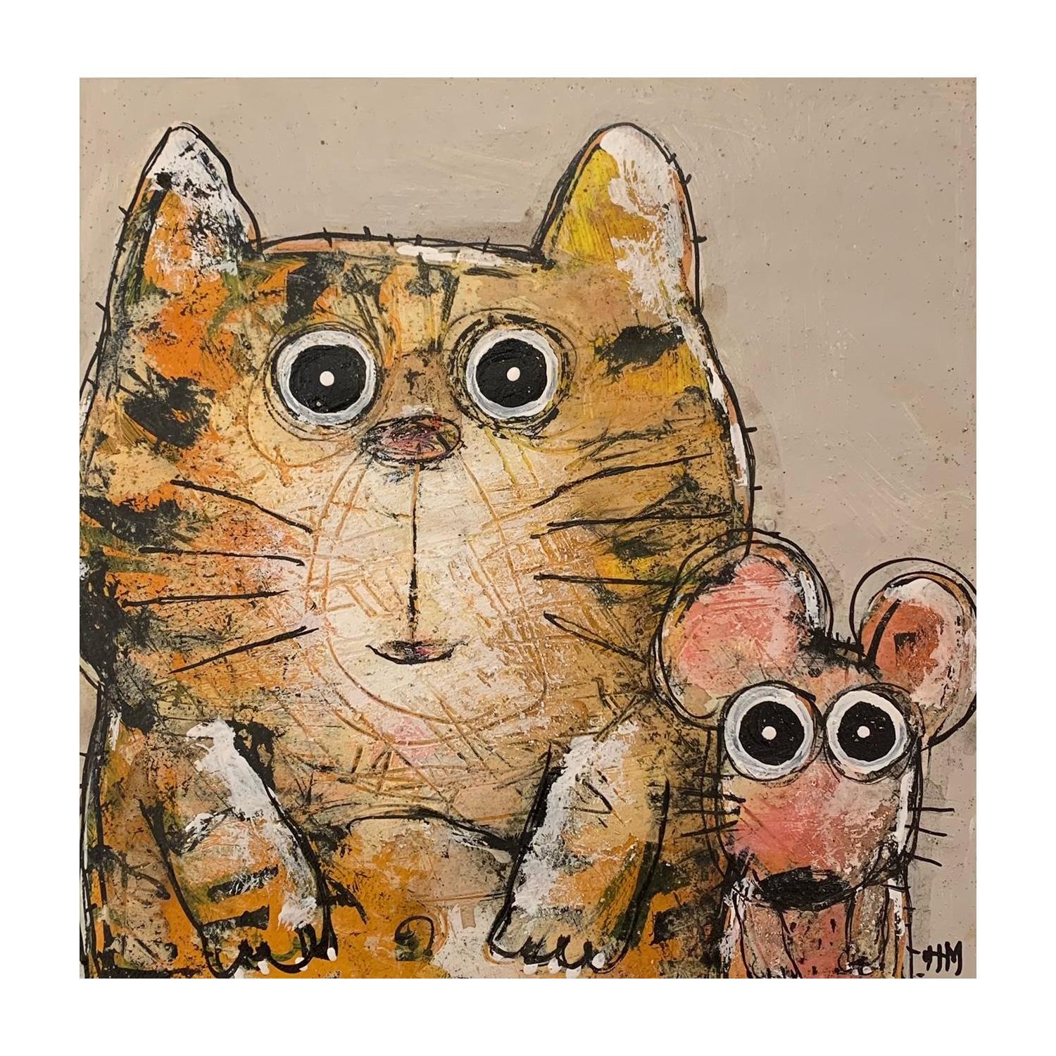 Peinture Chat et souris par Maury Hervé | Tableau Art Singulier Animaux