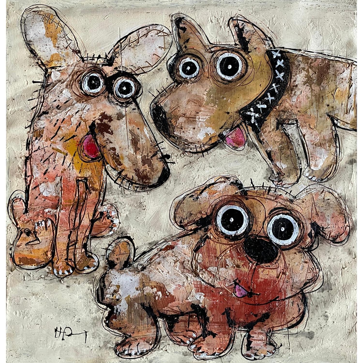 Peinture Little Gang par Maury Hervé | Tableau Art Singulier Animaux