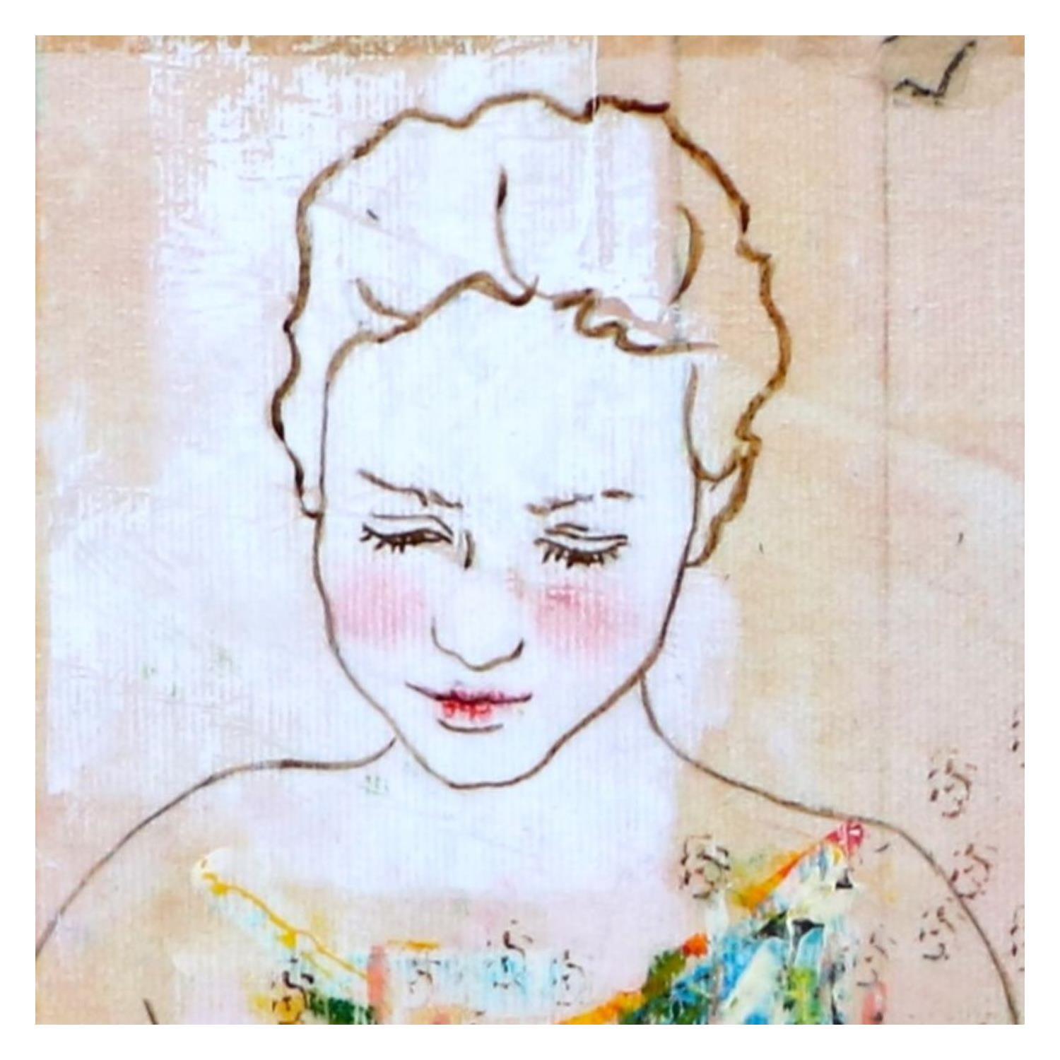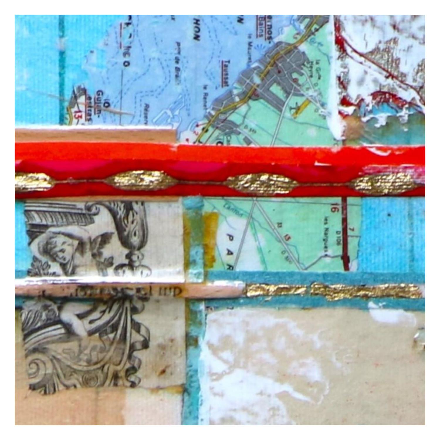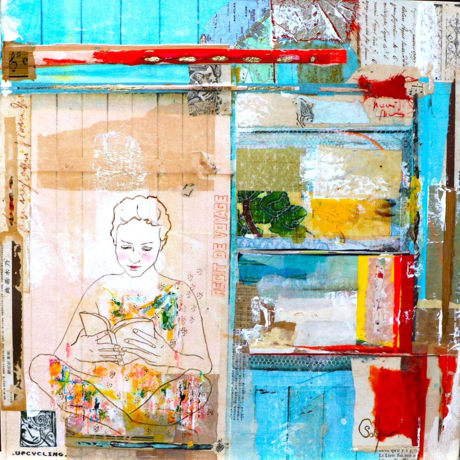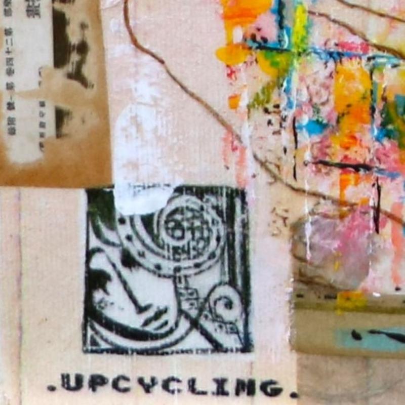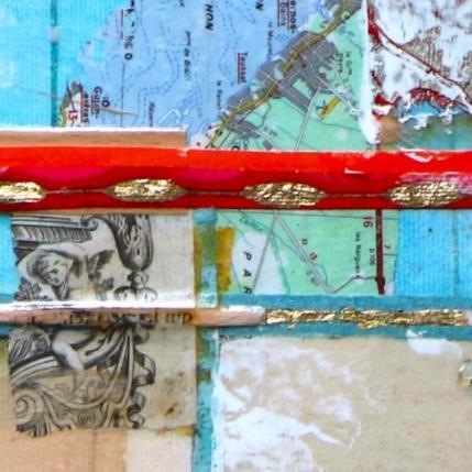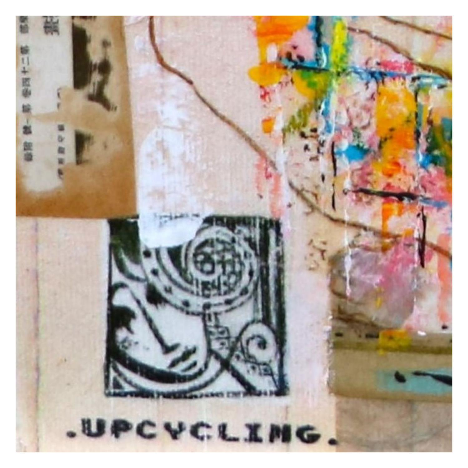 L'artiste a utilisé la technique mixte, Encre, Acrylique, upcycling, photo, collage, estampage pour créer cette peinture grand format toile sur Bois de style Art Singulier.