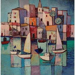 L'artiste a utilisé la technique Acrylique pour créer cette peinture petit format sur Papier de style Figuratif sur les thèmes Marine, Urbain.