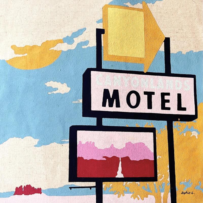Cette oeuvre d'art contemporain unique et originale "Arizona motel" a été réalisée par l'artiste contemporain Sophie L.. L'artiste a utilisé la technique Acrylique pour créer cette peinture petit format sur Toile de style Figuratif sur le thème Paysages.