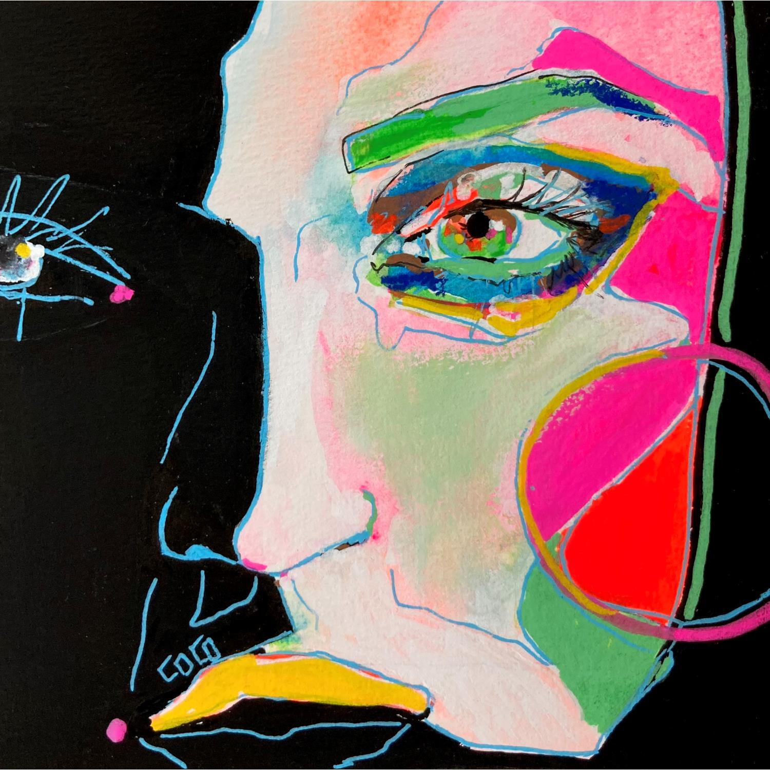 L'artiste a utilisé les techniques Acrylique, Encre pour créer cette peinture petit format sur Papier de style Figuratif sur le thème Portraits.