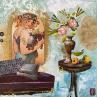 L'artiste a utilisé les techniques Acrylique, Collage pour créer cette peinture petit format sur Carton toilé de style Figuratif sur les thèmes Portraits, Scènes de vie.