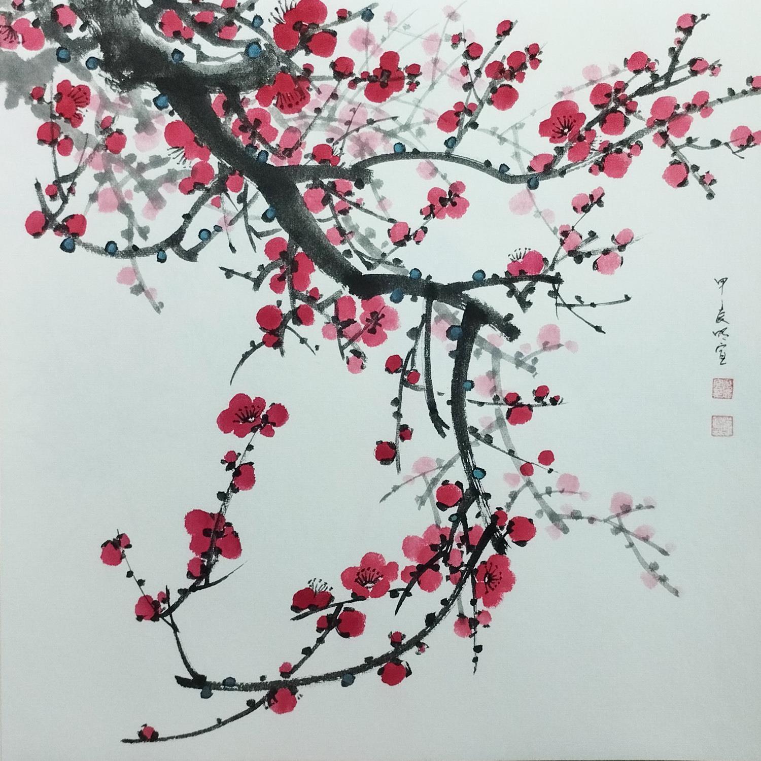 Red blossom 7Peinture Red blossom 7 par Du Mingxuan | Tableau Figuratif Nature Aquarelle Encre