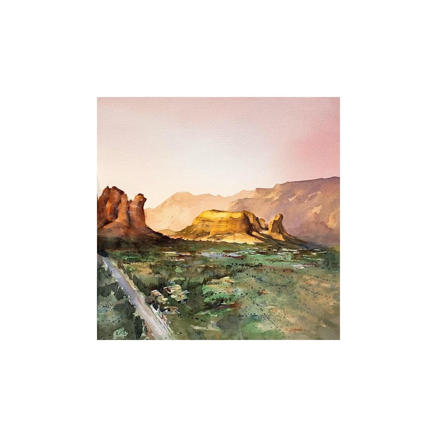 Peinture Sedona 47 par Seruch Capouillez Isabelle | Tableau Figuratif Paysages Aquarelle