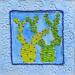 L'artiste a utilisé de la broderie et de l'aquarelle sur du papier amate d'écorce pour créer ce sujet, peinture de petite taille.