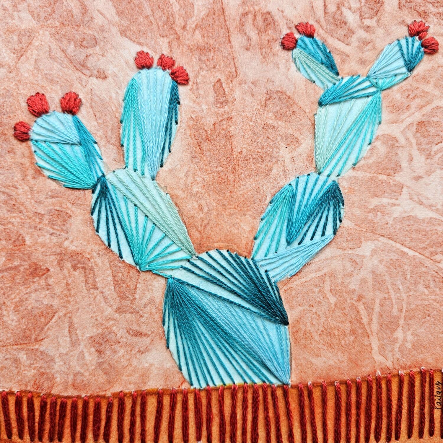 L'artiste a utilisé de la broderie et de l'aquarelle sur papier pour créer ce sujet, peinture de petite taille.