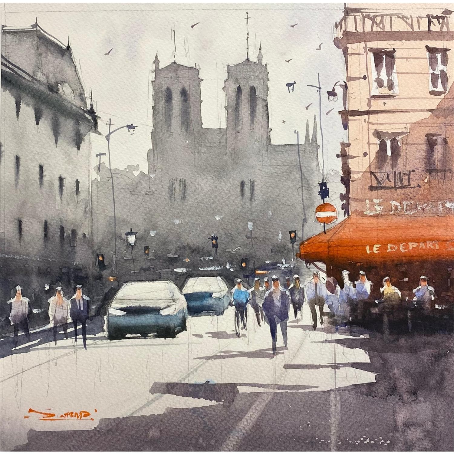 L'artiste a utilisé la technique Aquarelle pour créer cette peinture petit format sur papier de style Figuratif sur les thèmes Paysages, scènes de vie, Urbain.