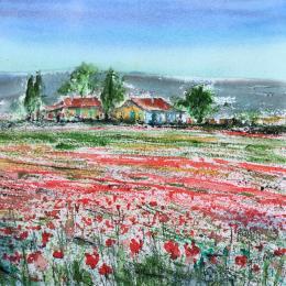 L'artiste a utilisé la technique Aquarelle pour créer cette peinture petit format sur Papier de style Figuratif sur le thème paysage