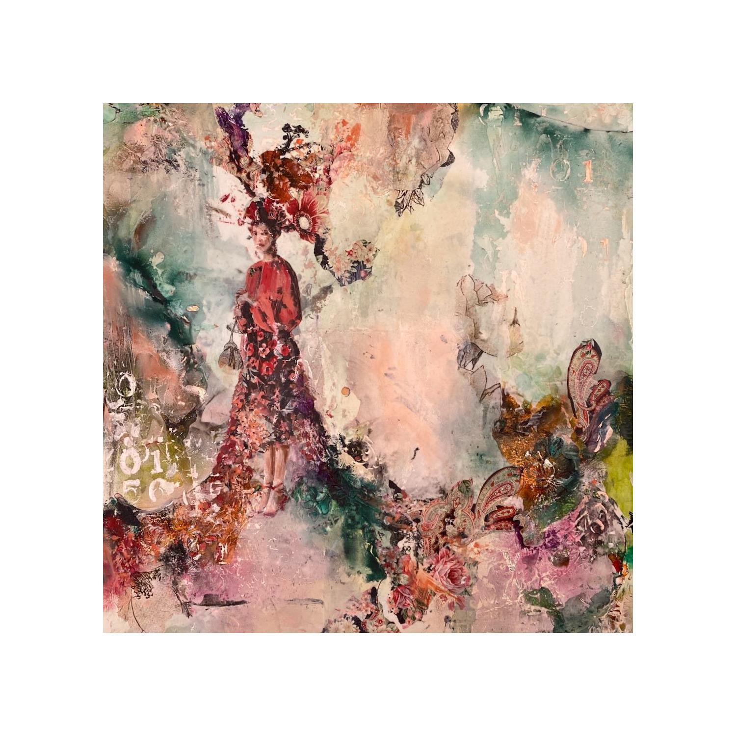 L'artiste a utilisé les techniques Collage, Huile, Acrylique pour créer cette peinture petit format sur papier de style Figuratif sur le thème scènes de vie.