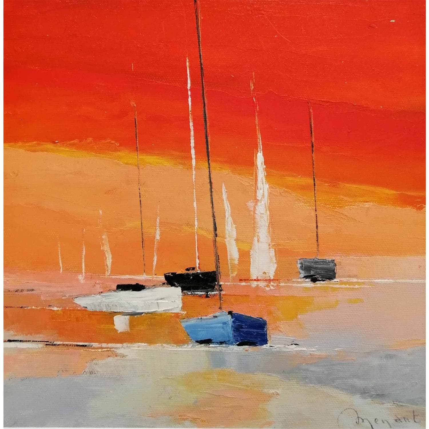 L'artiste a utilisé les techniques Huile, Acrylique pour créer cette peinture petit format sur Toile de style Figuratif sur le thème Marine.