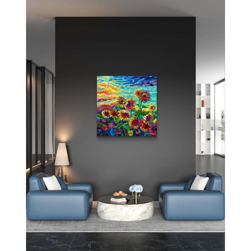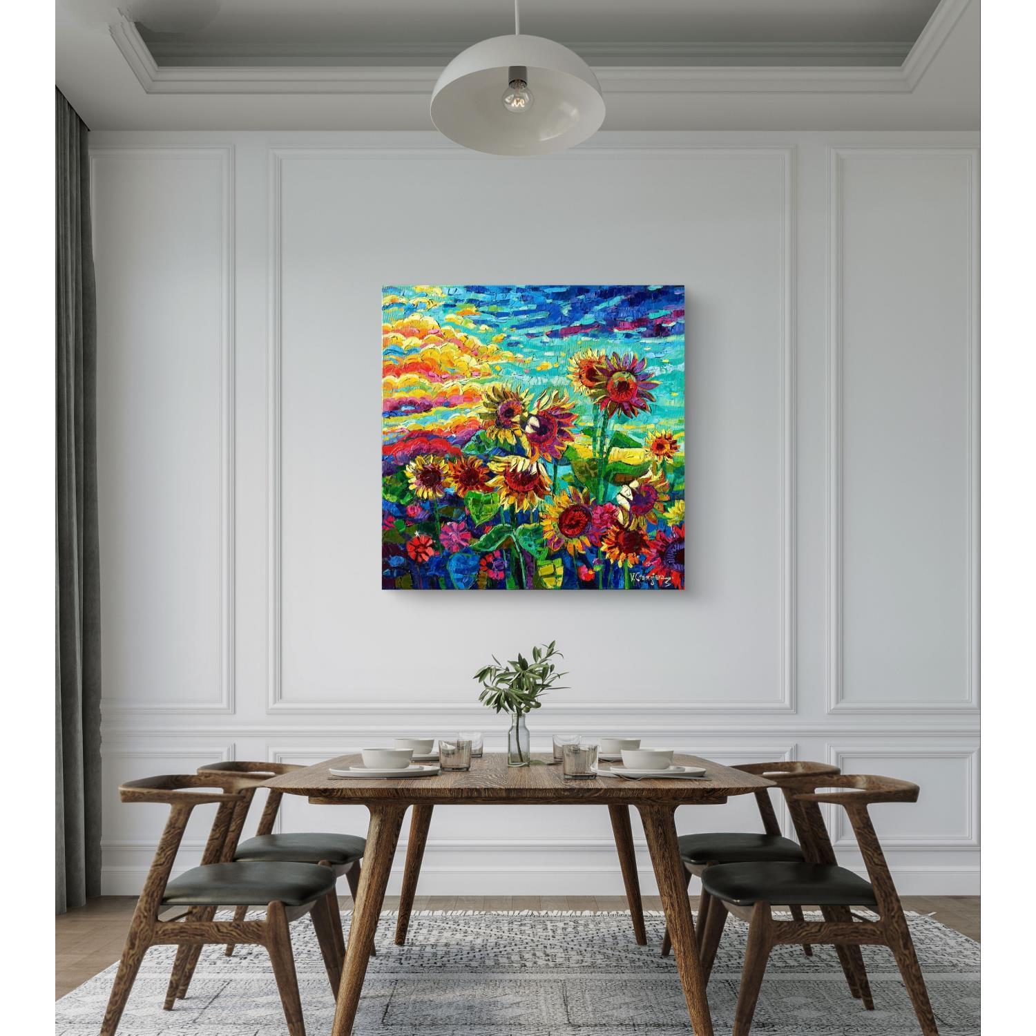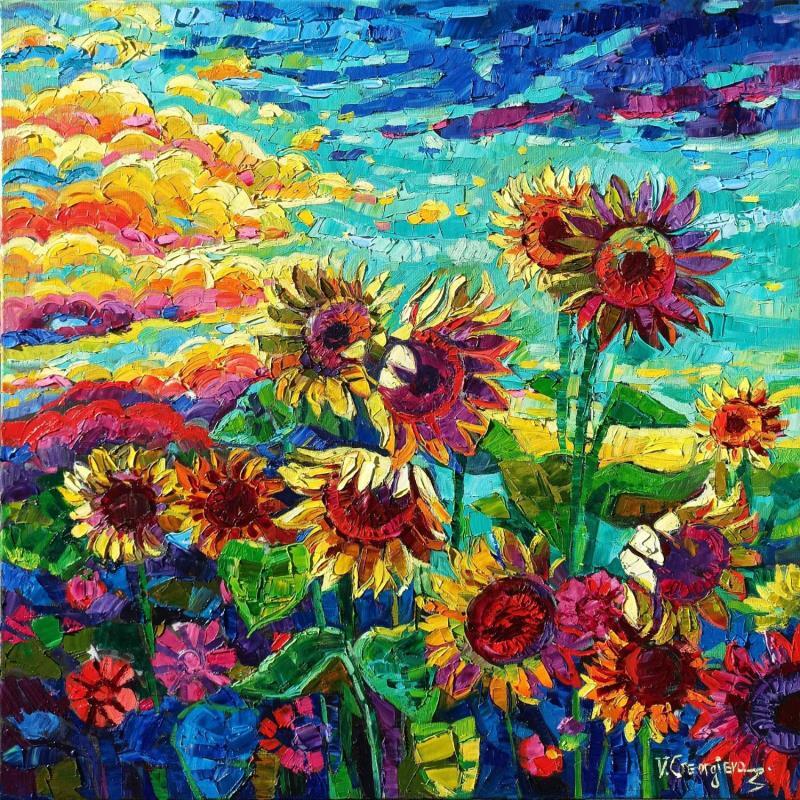 Cette oeuvre d'art contemporain unique et originale "When the sunflowers meet the clouds" a été réalisée par l'artiste contemporain Georgieva Vanya.