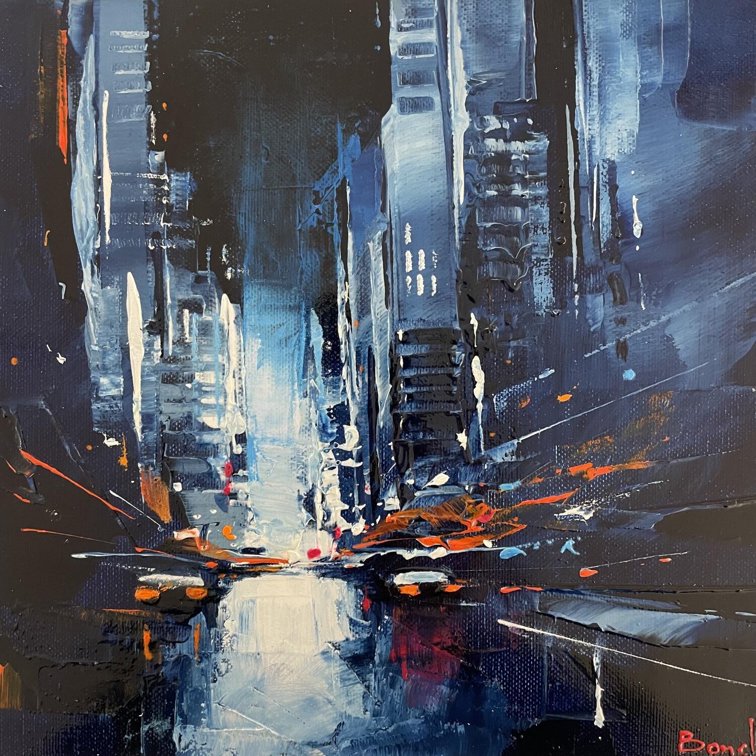 Peinture DARK CITY par Bond Tetiana | Tableau Figuratif Urbain Huile