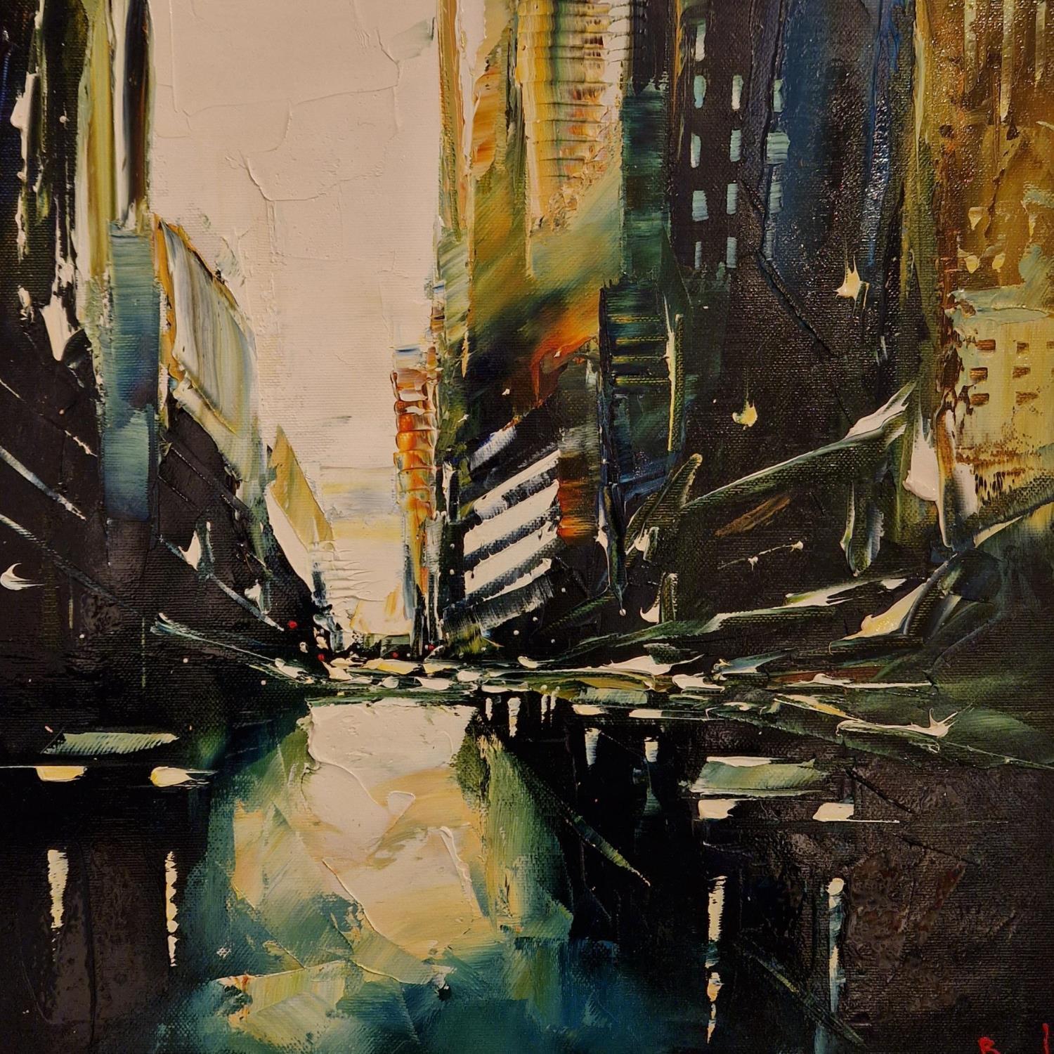 Cette oeuvre d'art contemporain unique et originale "DARK DOWNTOWN" a été réalisée par l'artiste contemporain Bond Tetiana.