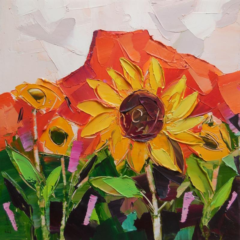 Peinture Sunflowers par Lunetskaya Elena | Tableau Impressionnisme Paysages Nature Minimaliste Huile