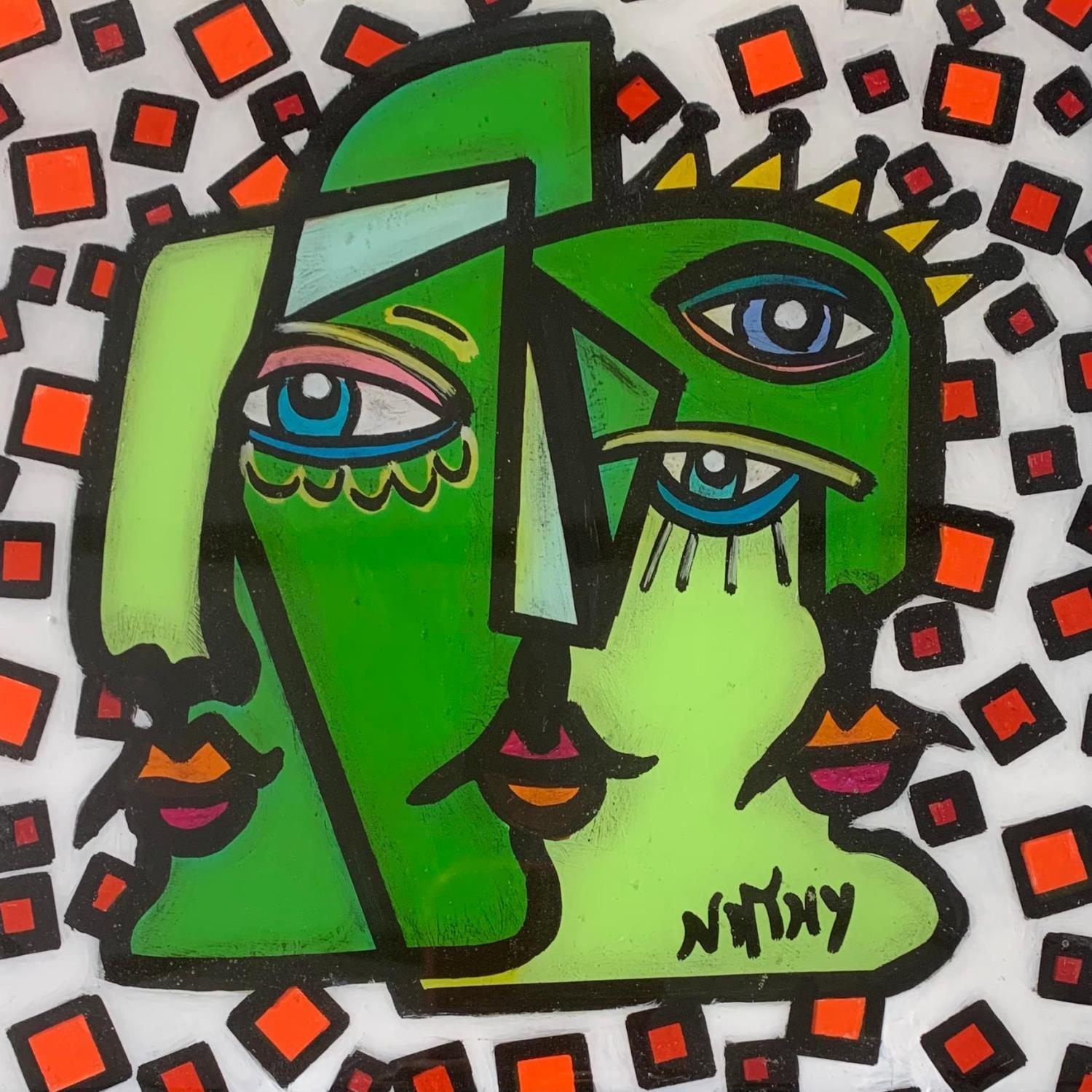 Cette oeuvre d'art contemporain unique et originale "GREEN TRINITÉ CUBES" a été réalisée par l'artiste contemporain Nathy. L'artiste a utilisé la technique Acrylique pour créer cette peinture petit format sur Dibon de style Pop-art sur le thème Icones Pop.