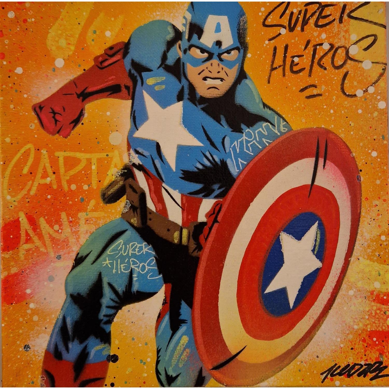 Cette oeuvre d'art contemporain unique et originale "Captain America " a été réalisée par l'artiste contemporain Kedarone.