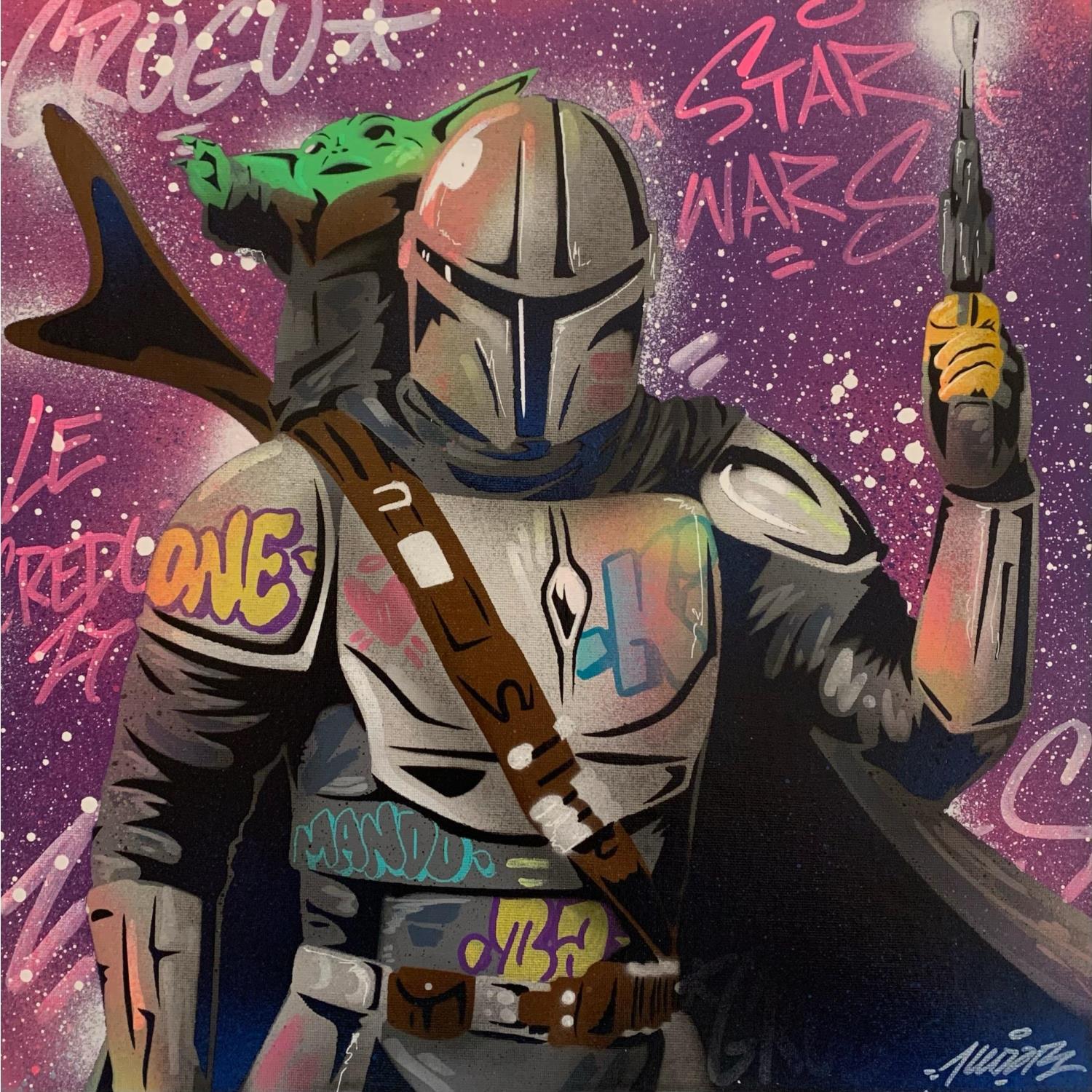 Cette oeuvre d'art contemporain unique et originale "MANDO ET LE PETIT" a été réalisée par l'artiste contemporain Kedarone.