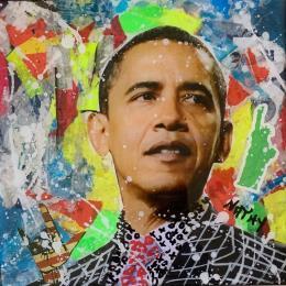 Peinture BARACK OBAMA par Nathy | Tableau Pop-art Icones Pop Graffiti Acrylique Collage Posca Résine Papier