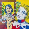 L'artiste a utilisé différentes techniques pour créer cette peinture petit format de style Pop-art sur le thème Icones Pop.