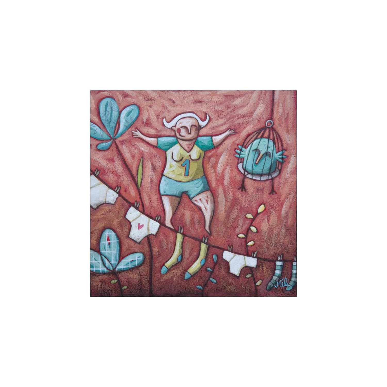 Sur la cordePeinture Sur la corde par Catoni Melina | Tableau Art naïf Scènes de vie