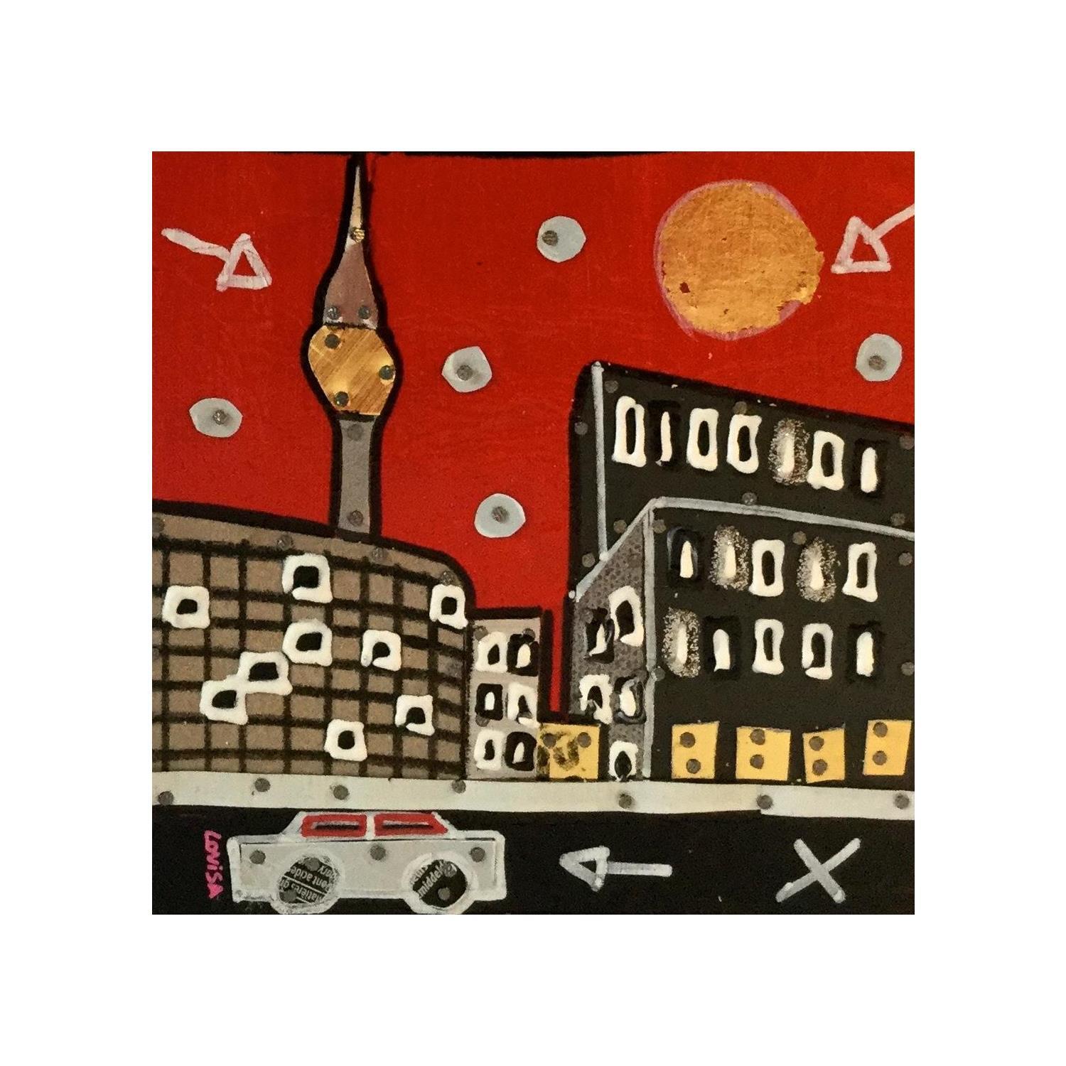 L'artiste a utilisé différentes techniques pour créer cette peinture petit format sur toile de style Street Art sur le thème Urbain.