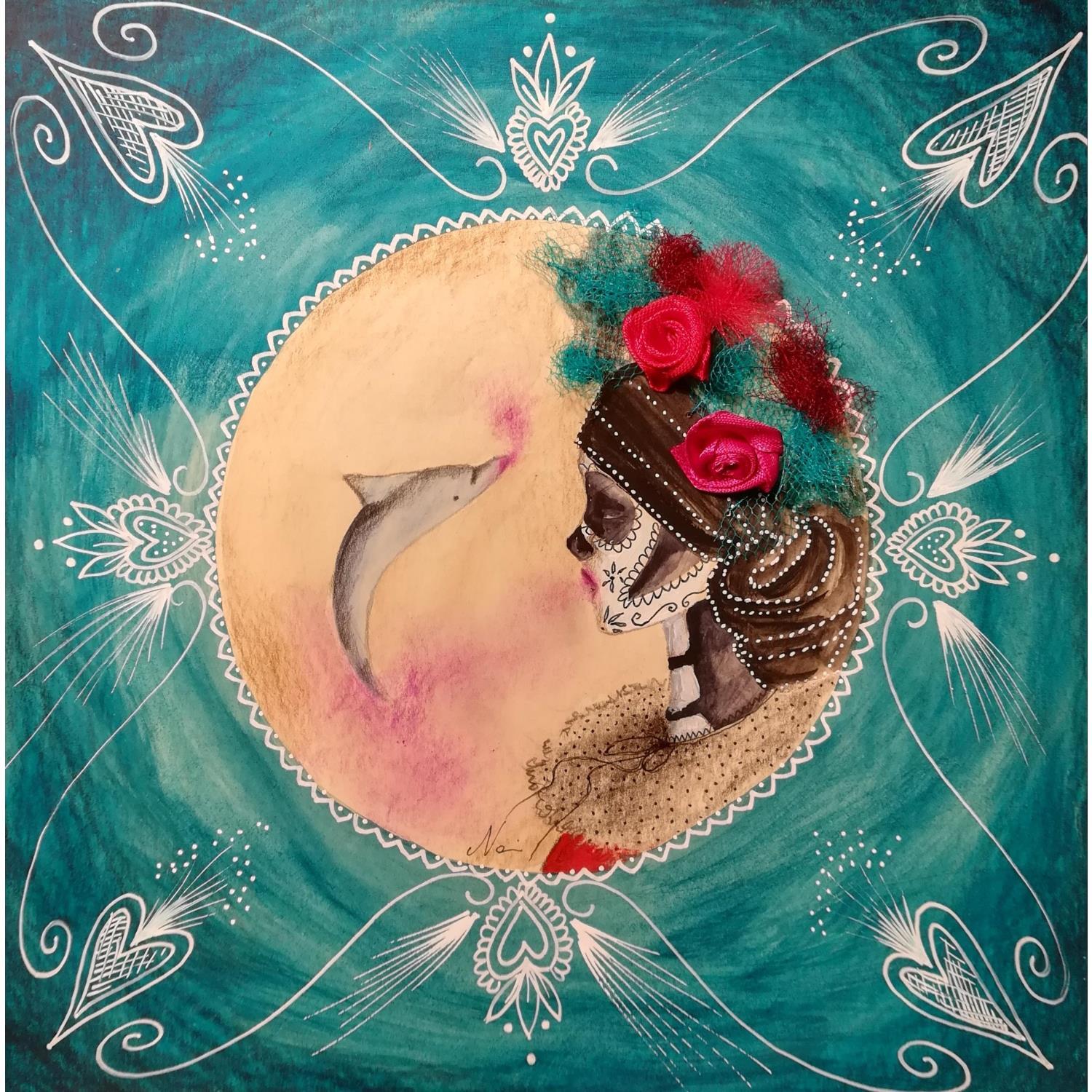 L'artiste a utilisé les techniques Acrylique, Collage pour créer cette peinture petit format sur Papier de style Surréalisme sur les thèmes Animaux, Scènes de vie.