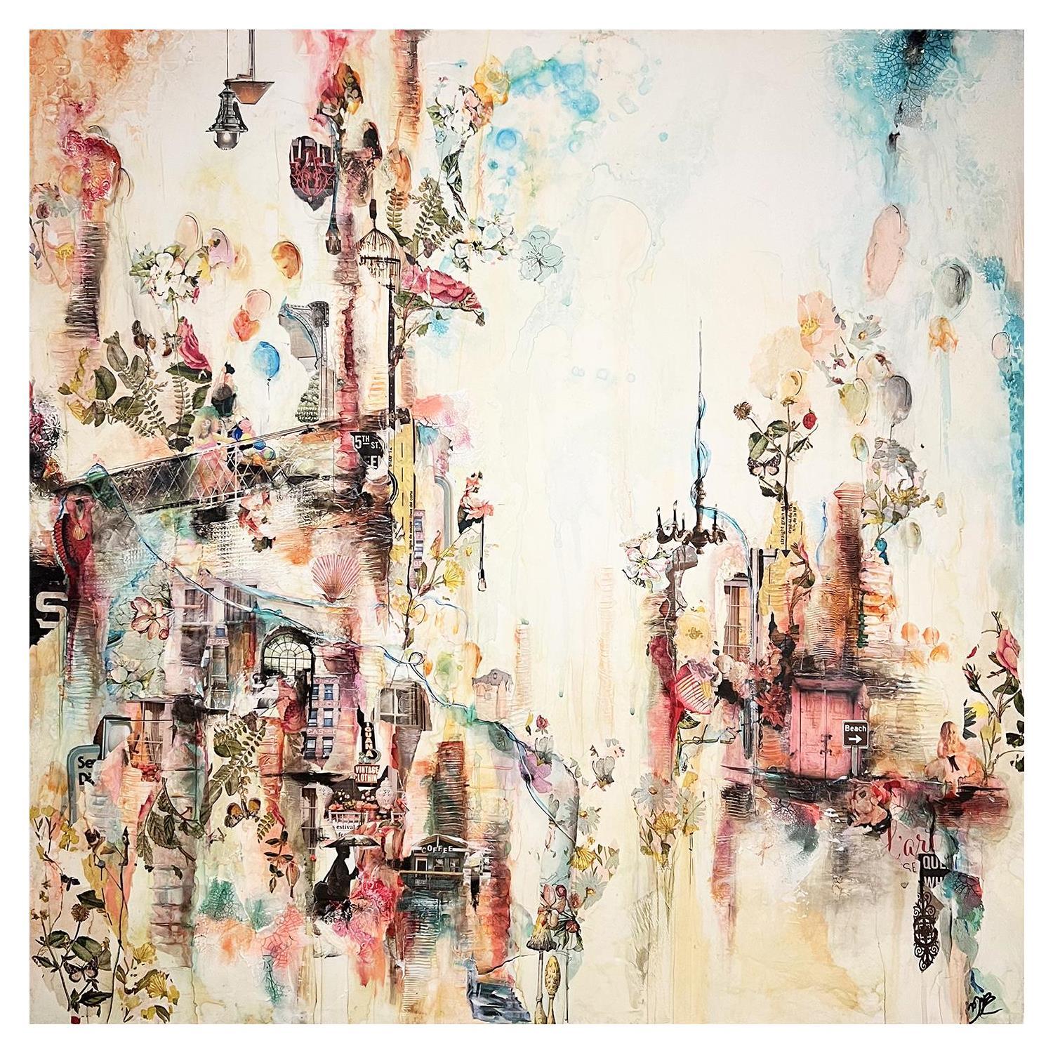 L'artiste a utilisé les techniques Acrylique, Collage, Huile pour créer cette peinture grand format sur Papier de style Surréalisme.