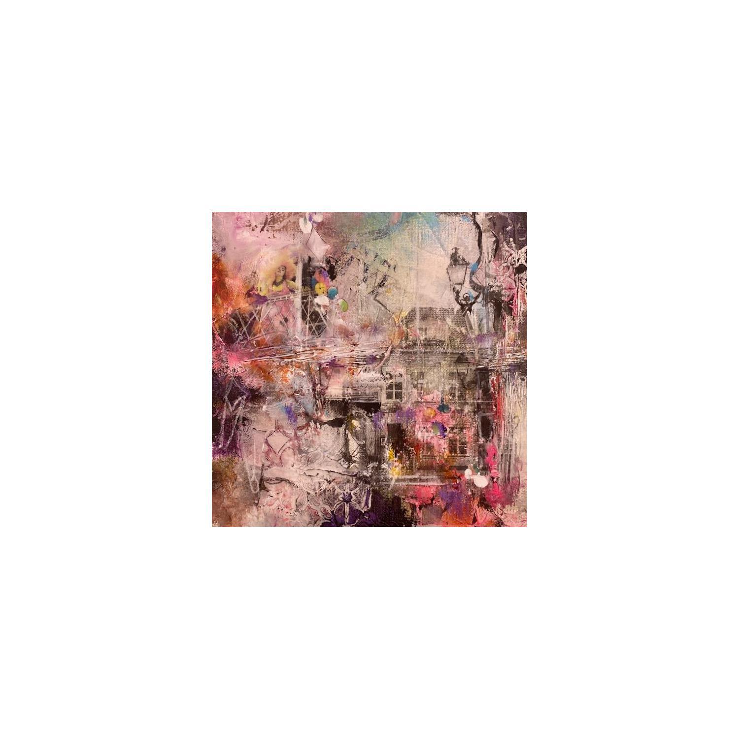 Cette oeuvre d'art contemporain unique et originale "La fête du village" a été réalisée par l'artiste contemporain Bergeron Marie-Josée.