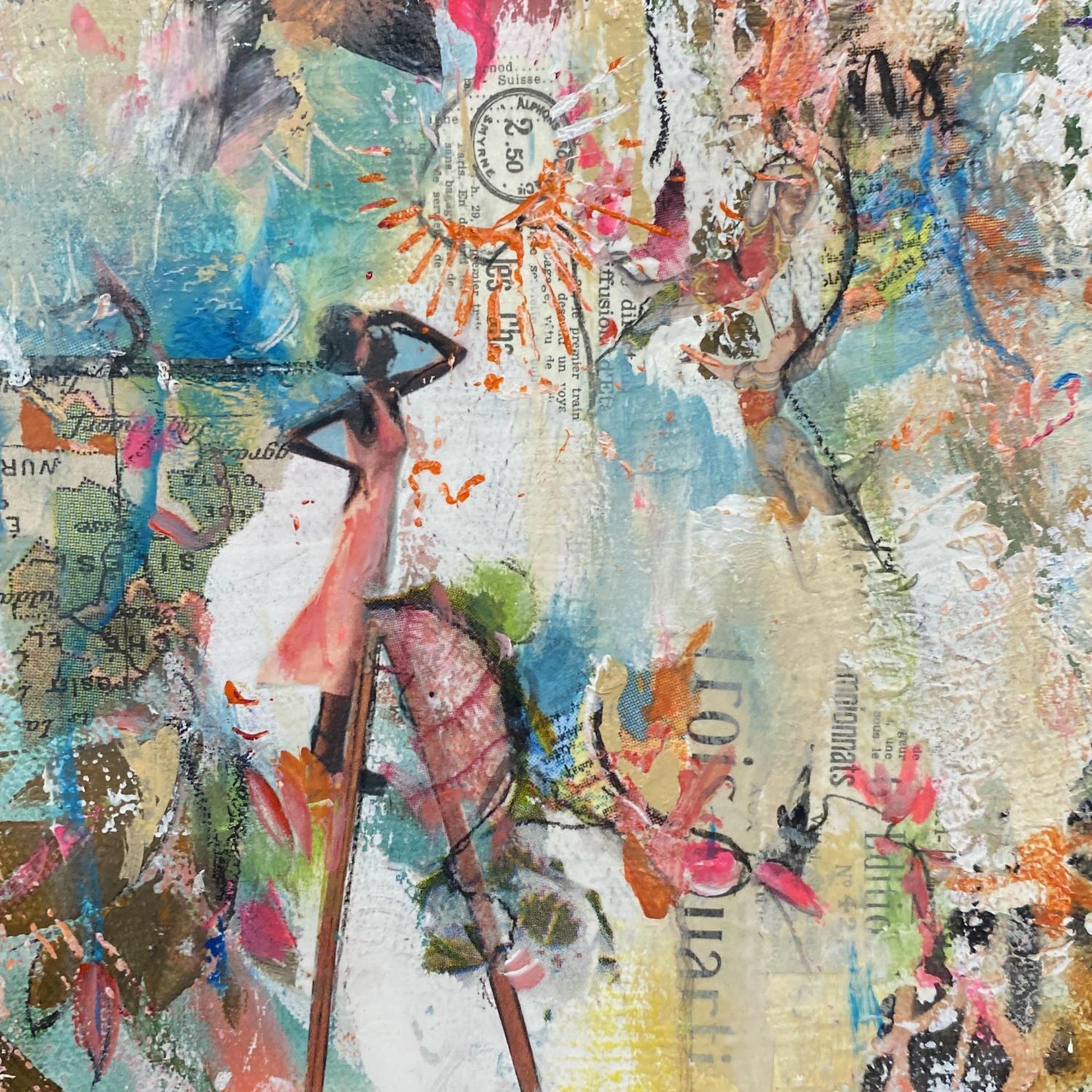 L'artiste a utilisé les techniques Acrylique, Collage, Huile pour créer cette peinture petit format sur Papier de style Surréalisme.