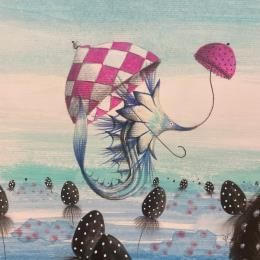 L'artiste a utilisé les techniques Acrylique, Collage pour créer cette peinture petit format sur Papier de style Surréalisme.