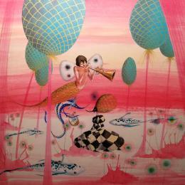 L'artiste a utilisé les techniques Acrylique, Collage pour créer cette peinture petit format sur Papier de style Surréalisme.