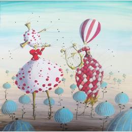 L'artiste a utilisé les techniques Acrylique, Collage pour créer cette peinture petit format sur Papier de style Surréalisme sur les thèmes Scènes de vie, Musique, Nature.
