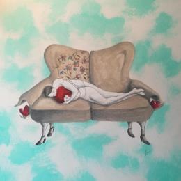 Cette oeuvre d'art contemporain unique et originale "Io e te, sul divano" a été réalisée par l'artiste contemporain Nai.