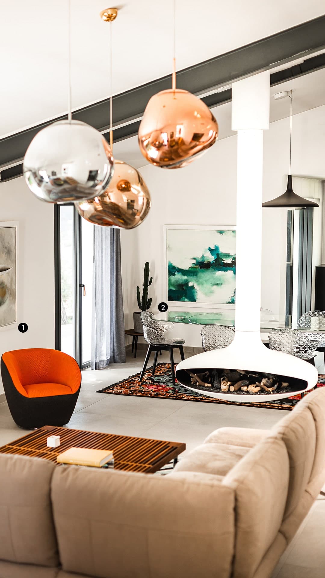 et sa multitude de choix visuels ainsi que sa cheminée contemporaine."