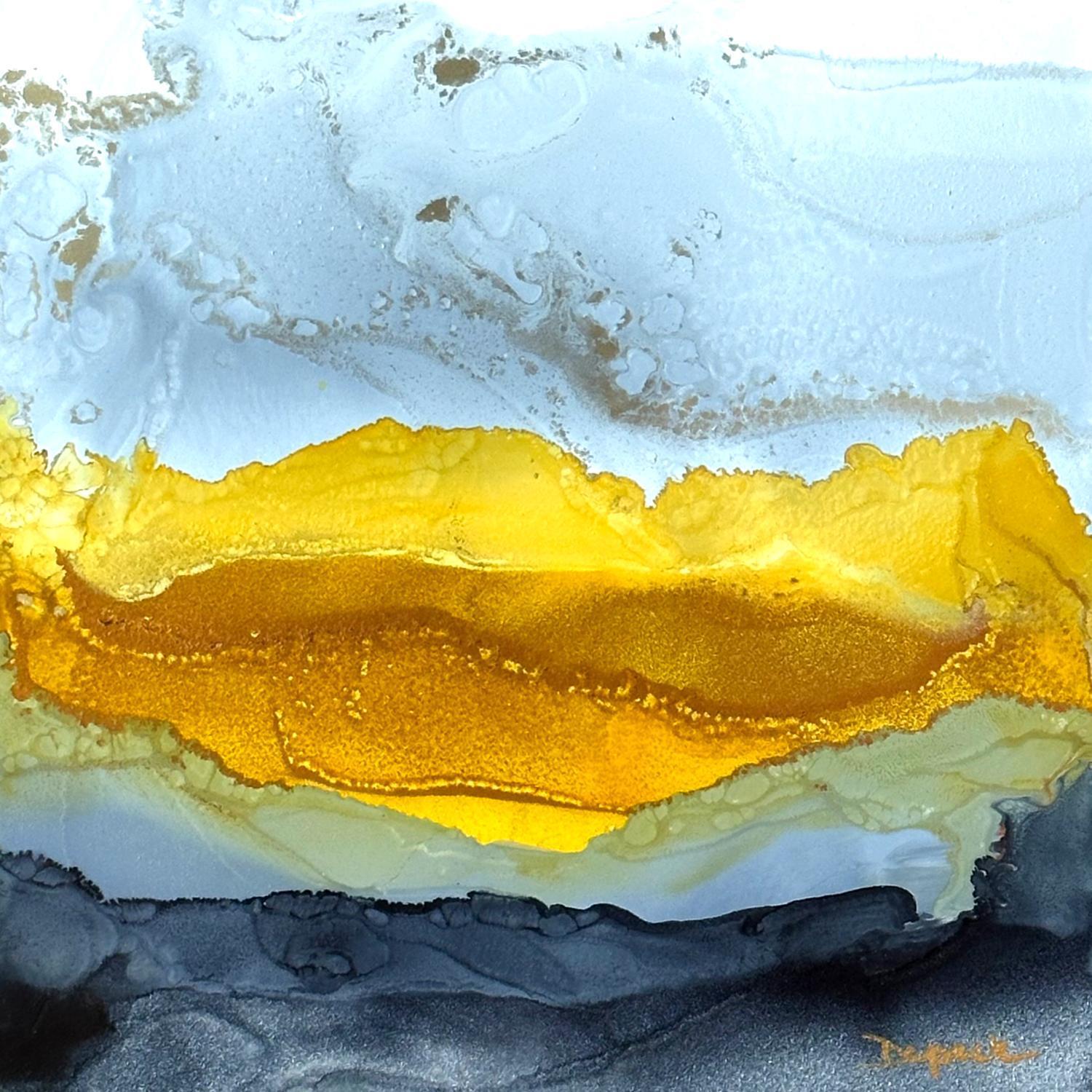L'artiste a utilisé la technique Acrylique pour créer cette peinture petit format sur Dibon de style Abstrait sur les thèmes Paysages, Minimaliste.