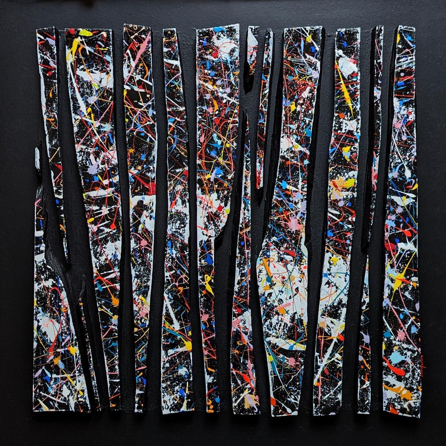 L'artiste a utilisé les techniques Résine, Bois, Acrylique pour créer cette peinture grand format sur Bois de style Abstrait.