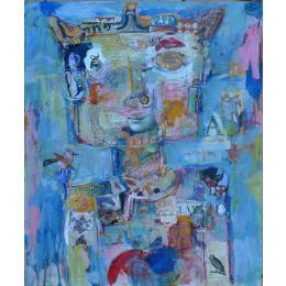 L'artiste a utilisé les techniques Acrylique, Collage pour créer cette peinture grand format sur Toile de style Art Singulier sur le thème Animaux.