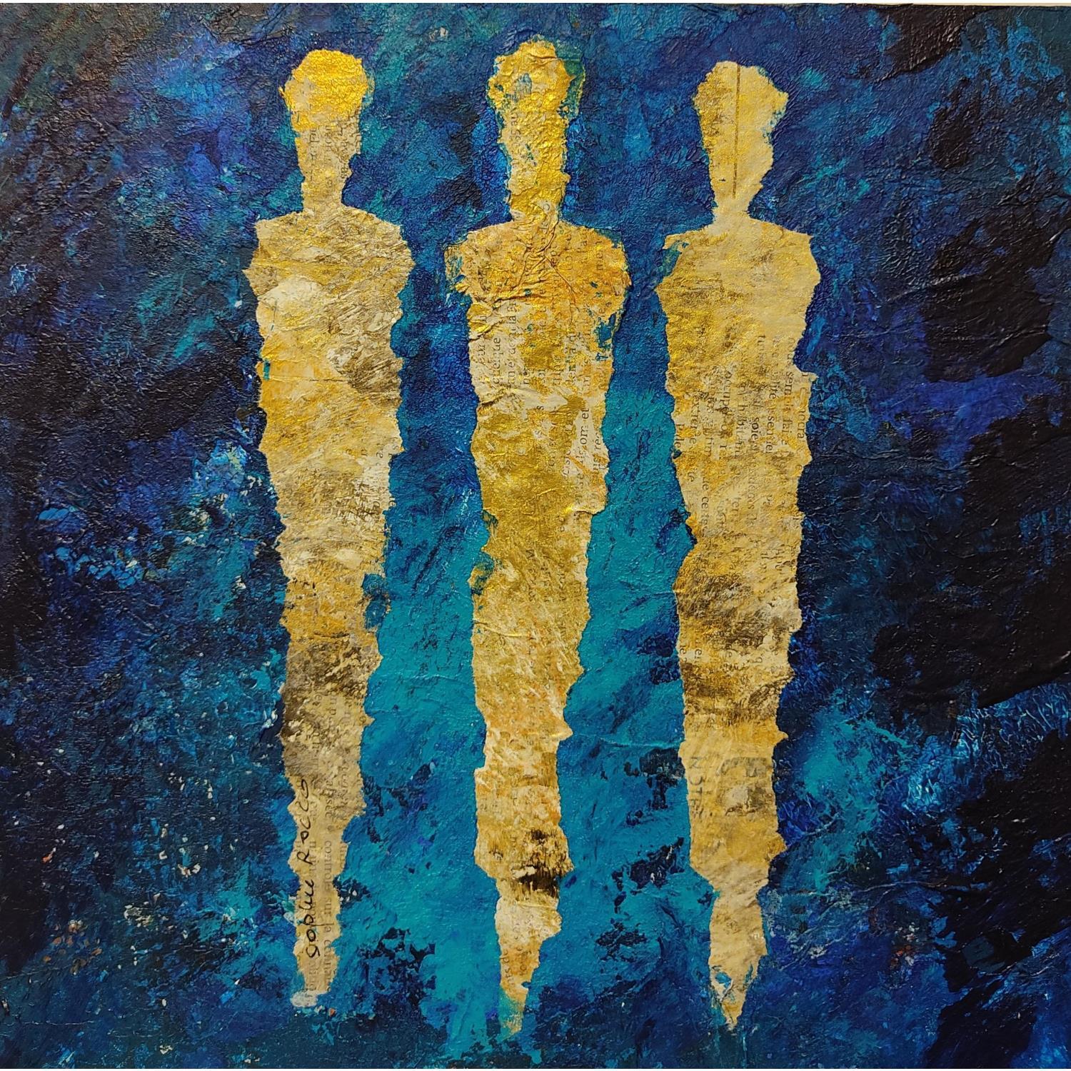 Cette oeuvre d'art contemporain unique et originale "Trio d'azur" a été réalisée par l'artiste contemporain Rocco Sophie.