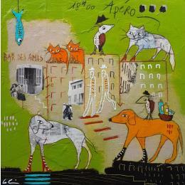 Cette oeuvre d'art contemporain unique et originale "L'apéro " a été réalisée par l'artiste contemporain Colin Sylvie.