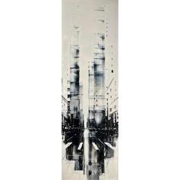Bien qu'étant achromatopsique (absence de perception des couleurs), Julien Rey nous fait voyager à travers ses toiles aux paysages urbains. L'histoire de Julien Rey commence comme toutes les belles histoires : par un rêve impossible. Achromatopsique, l'artiste ne voit qu'en noir et blanc. Pourtant, cette maladie ne l'empêche pas de voyager aux confins de la Birmanie, de changer de vie (il y devient moine bouddhiste) ou de se lancer dans l'art. De son voyage en Birmanie, il ramène une parfaite maîtrise de la feuille d'or, élément caractéristique de son travail. Sa technique à base de laque travaillée au couteau et d'incrustations de feuille d'or place la lumière au centre de ses œuvres. Marqué par la philosophie zen, il réalise des compositions minimales qui apparaissent comme des instants suspendus, des pauses poétiques.