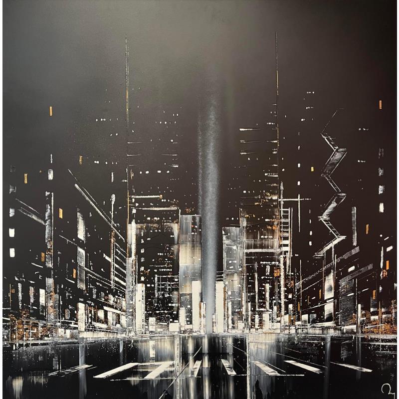 Bien qu'étant achromatopsique (absence de perception des couleurs), Julien Rey nous fait voyager à travers ses toiles aux paysages urbains. L'histoire de Julien Rey commence comme toutes les belles histoires : par un rêve impossible. Achromatopsique, l'artiste ne voit qu'en noir et blanc. Pourtant, cette maladie ne l'empêche pas de voyager aux confins de la Birmanie, de changer de vie (il y devient moine bouddhiste) ou de se lancer dans l'art. De son voyage en Birmanie, il ramène une parfaite maîtrise de la feuille d'or, élément caractéristique de son travail. Sa technique à base de laque travaillée au couteau et d'incrustations de feuille d'or place la lumière au centre de ses œuvres. Marqué par la philosophie zen, il réalise des compositions minimales qui apparaissent comme des instants suspendus, des pauses poétiques.