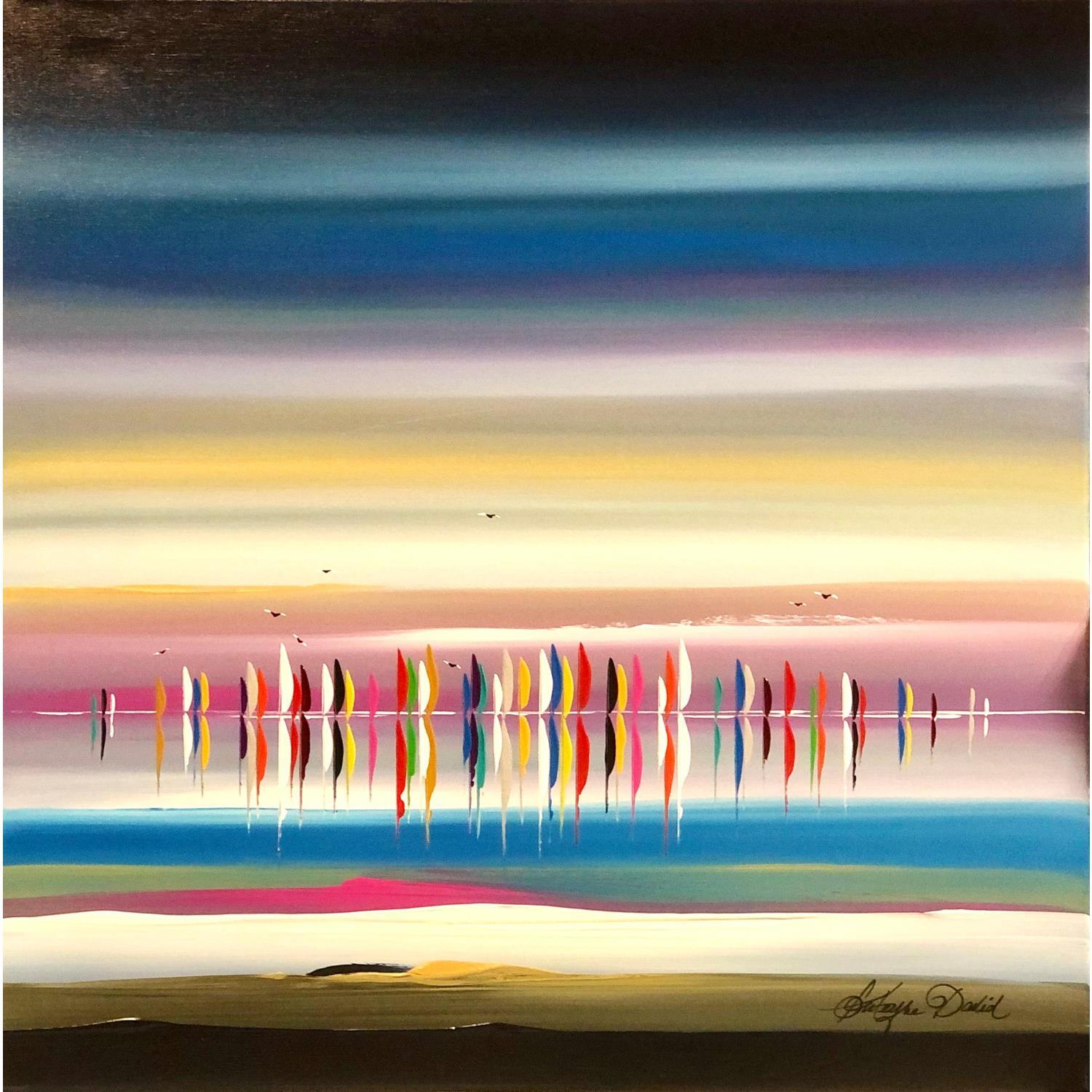 L'artiste a utilisé les techniques Huile, Acrylique pour créer cette peinture grand format sur Toile de style Figuratif sur le thème Marine.
