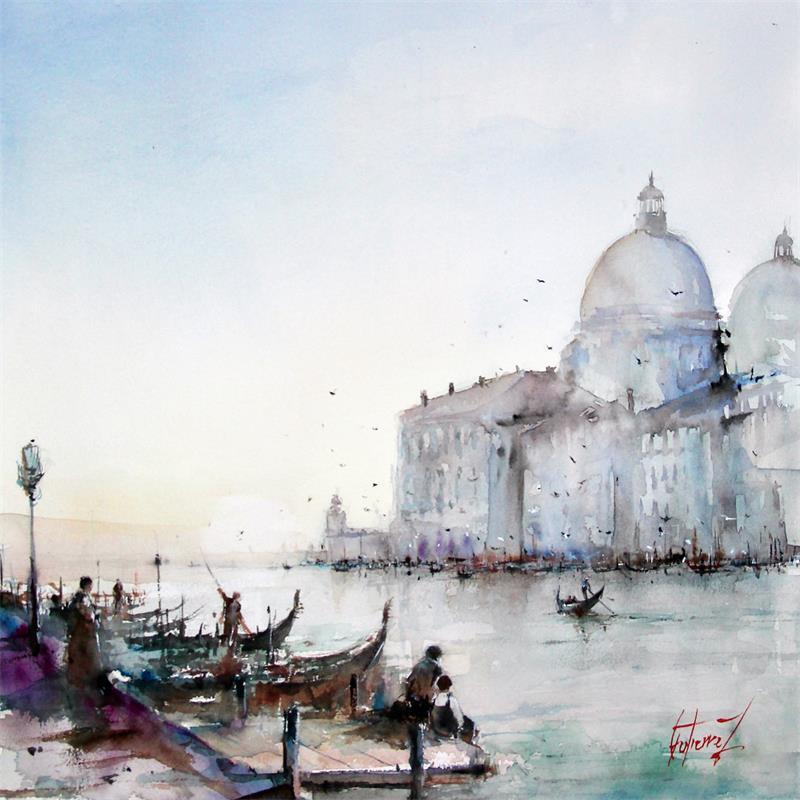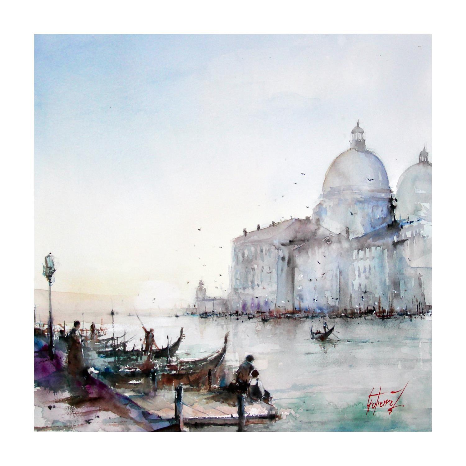 Peinture Ambiance Vénitienne par Gutierrez | Tableau Impressionnisme Paysages Scènes de vie Aquarelle