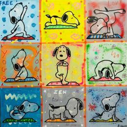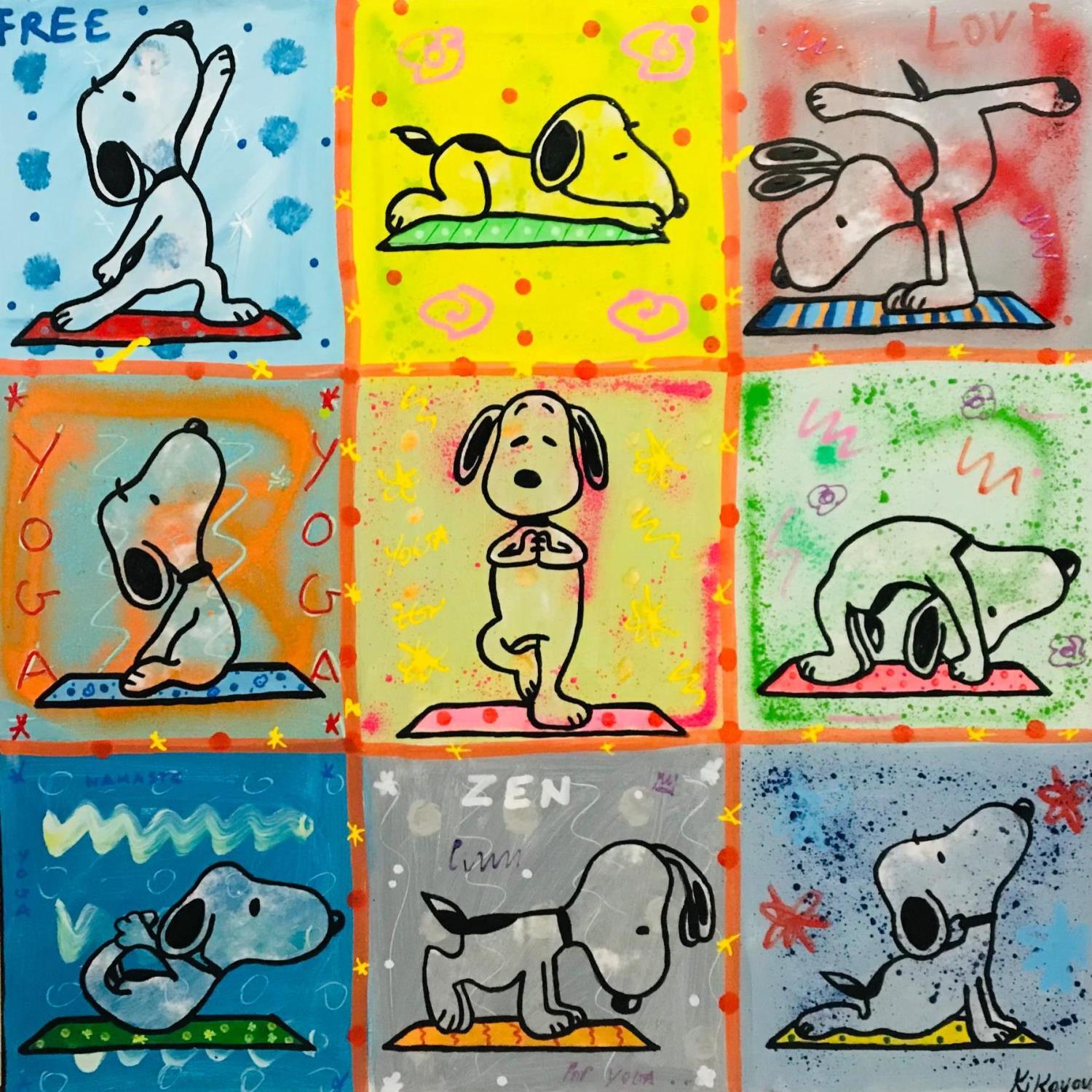Cette oeuvre d'art contemporain unique et originale "Snoopy yoga by 9" a été réalisée par l'artiste contemporain Kikayou.