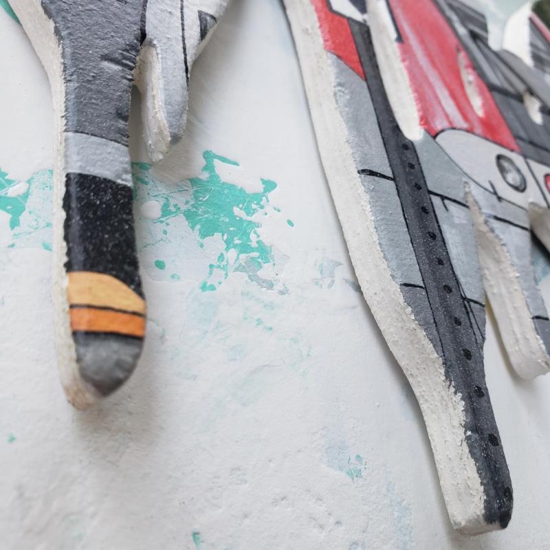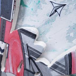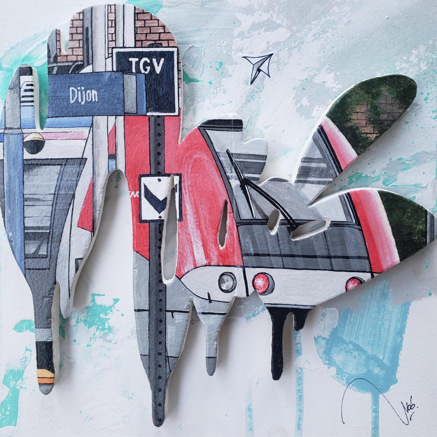 L'artiste a utilisé les techniques Acrylique, Bois, Graffiti pour créer cette peinture petit format sur Bois de style Street Art sur les thèmes Architecture, Paysages, Urbain.