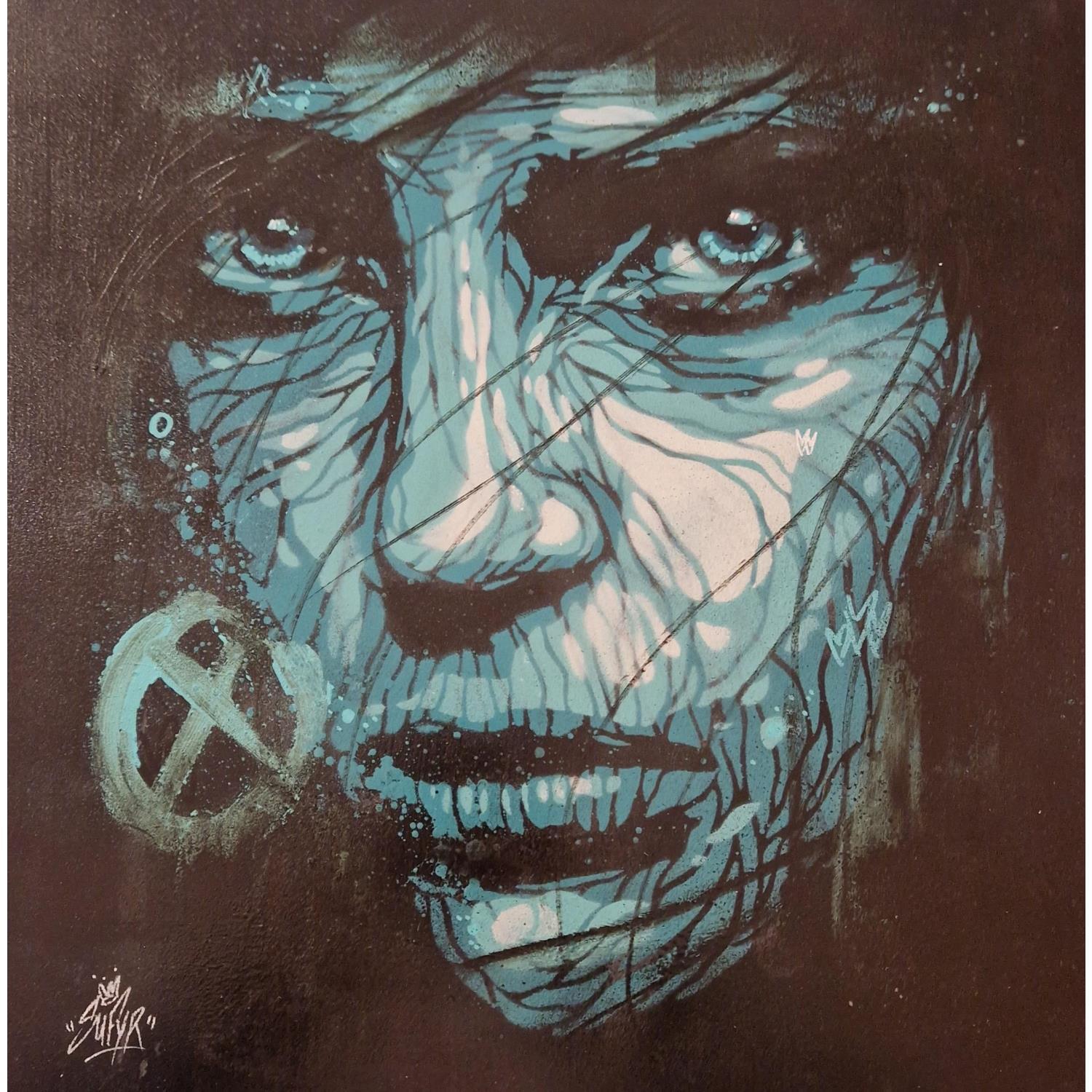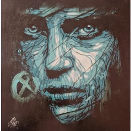 L'artiste a utilisé les techniques Acrylique, Graffiti pour créer cette peinture petit format sur toile de style Street Art.